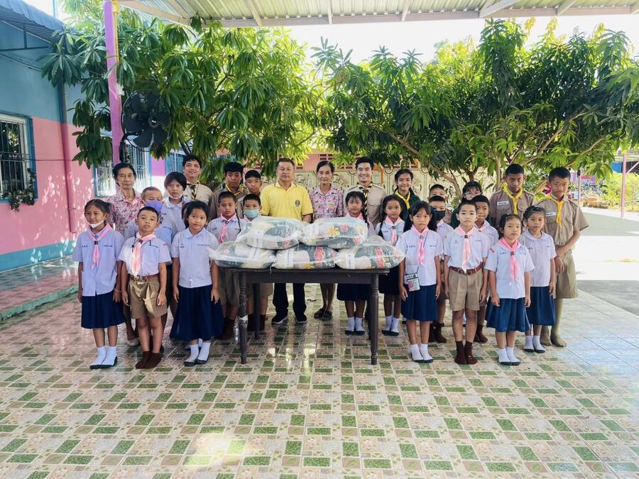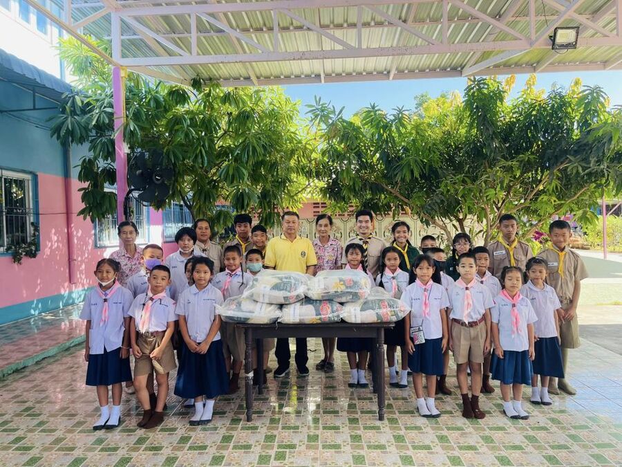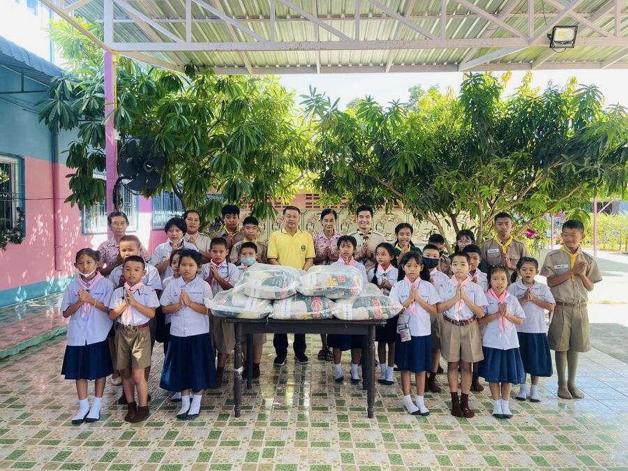 สมาคมการประมงจังหวัดสมุทรปราการ นำโดยผู้ใหญ่นพดล เลิศมงคลสมุทร ผู้ใหญ่บ้านหมู่ ๔ ตำบลแหลมฟ้าผ่า อำเภอพระสมุทรเจดีย์ จังหวัดสมุทรปราการ นำข้าวสารจำนวน 250 กิโลกรัม มอบให้กับทางโรงเรียน