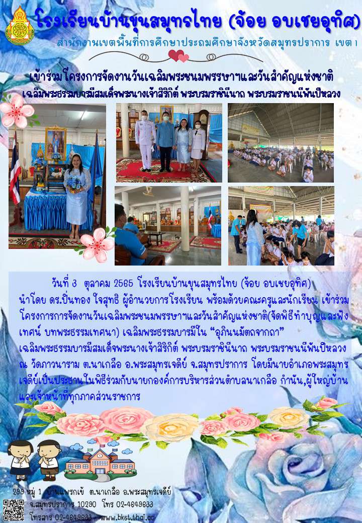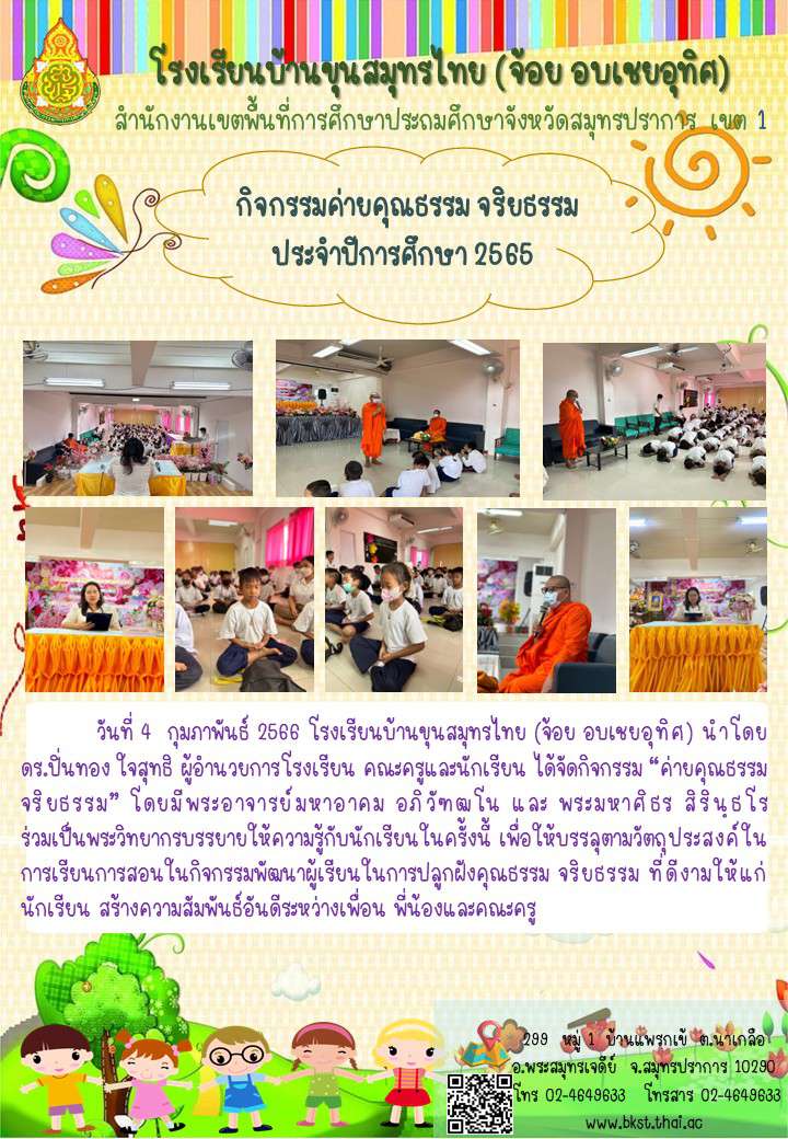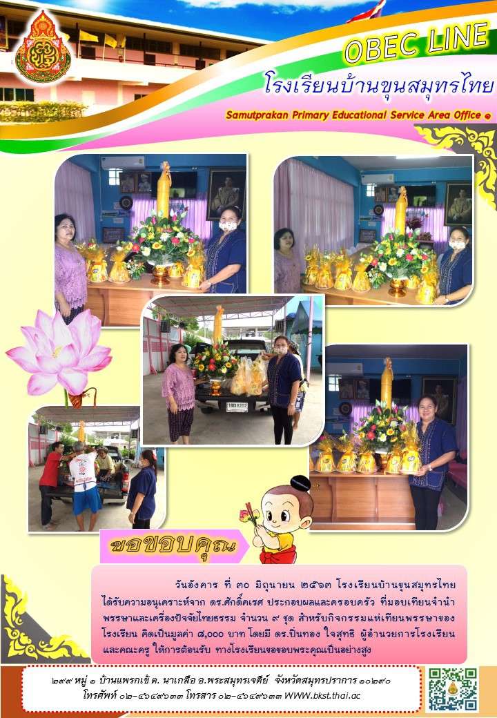 โรงเรียนบ้านขุนสมุทรไทยต้นแบบโรงเรียน รักษาศีล5เชิงคุณภาพระดับ5ดาว