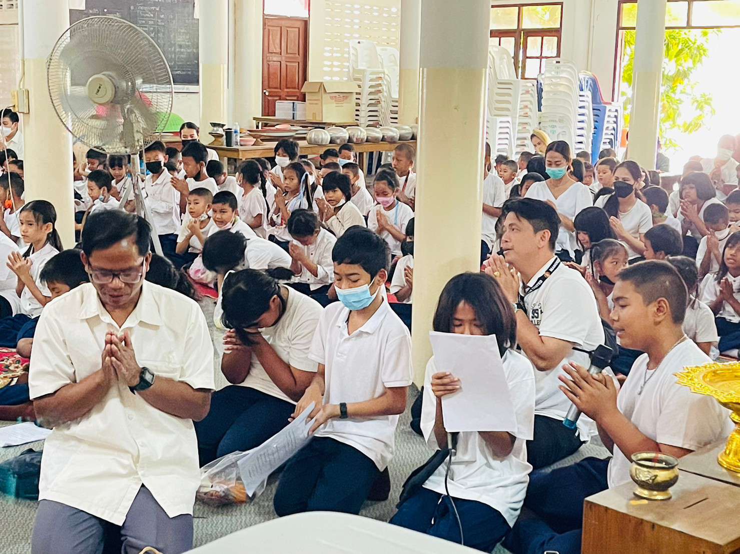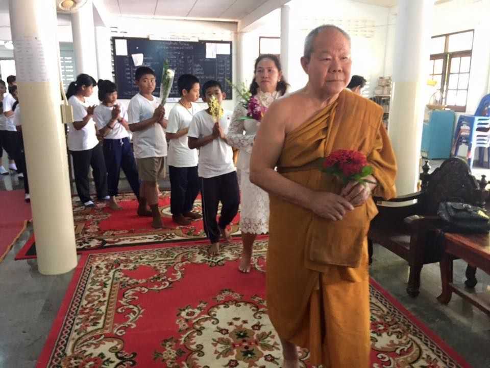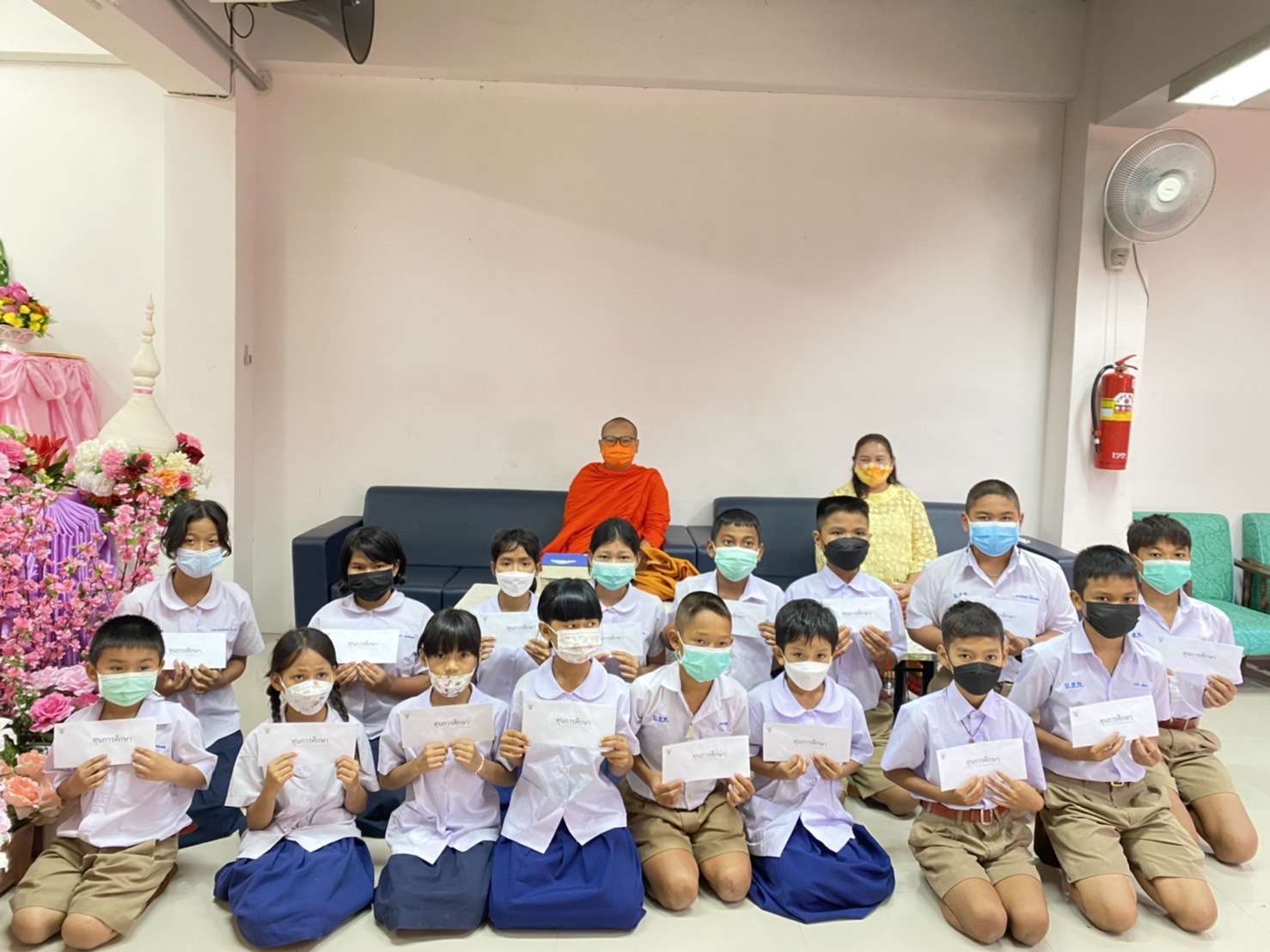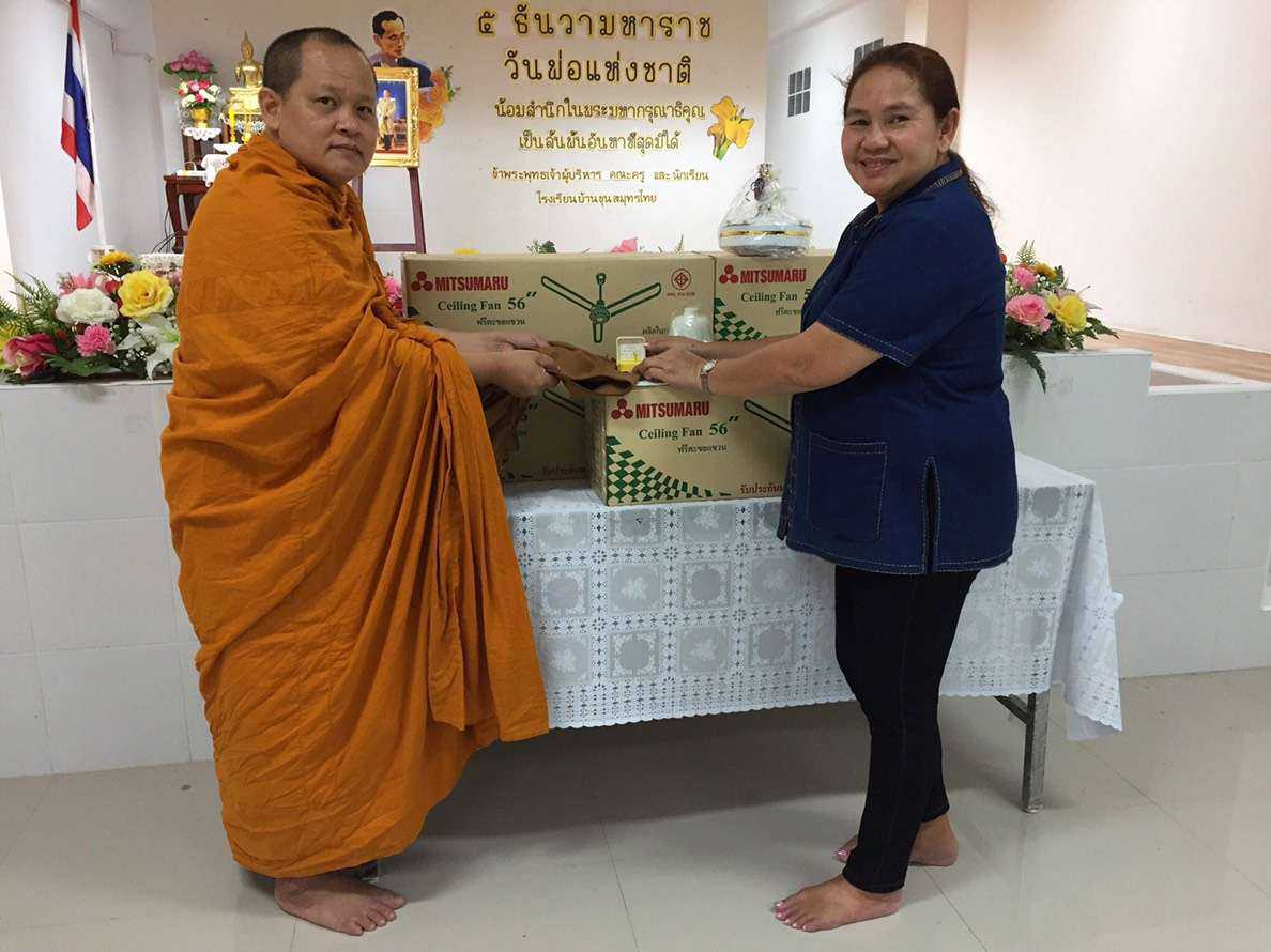 พระศรีสิทธิมุนีคณบดีคณะมนุษยศาสตร์ มหาจุฬาลงกรณ์ราชวิทยาลัย มาบริจาคพัดลมเพดาน