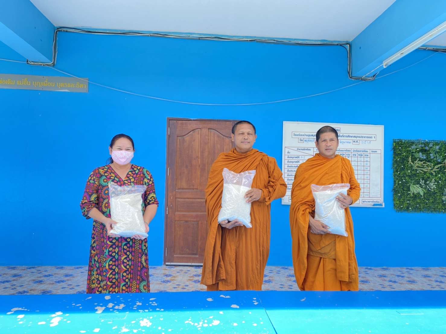 สมาคมการประมงจังหวัดสมุทรปราการ นำโดยผู้ใหญ่นพดล เลิศมงคลสมุทร ผู้ใหญ่บ้านหมู่ ๔ ตำบลแหลมฟ้าผ่า อำเภอพระสมุทรเจดีย์ จังหวัดสมุทรปราการ นำข้าวสารจำนวน 250 กิโลกรัม มอบให้กับทางโรงเรียน