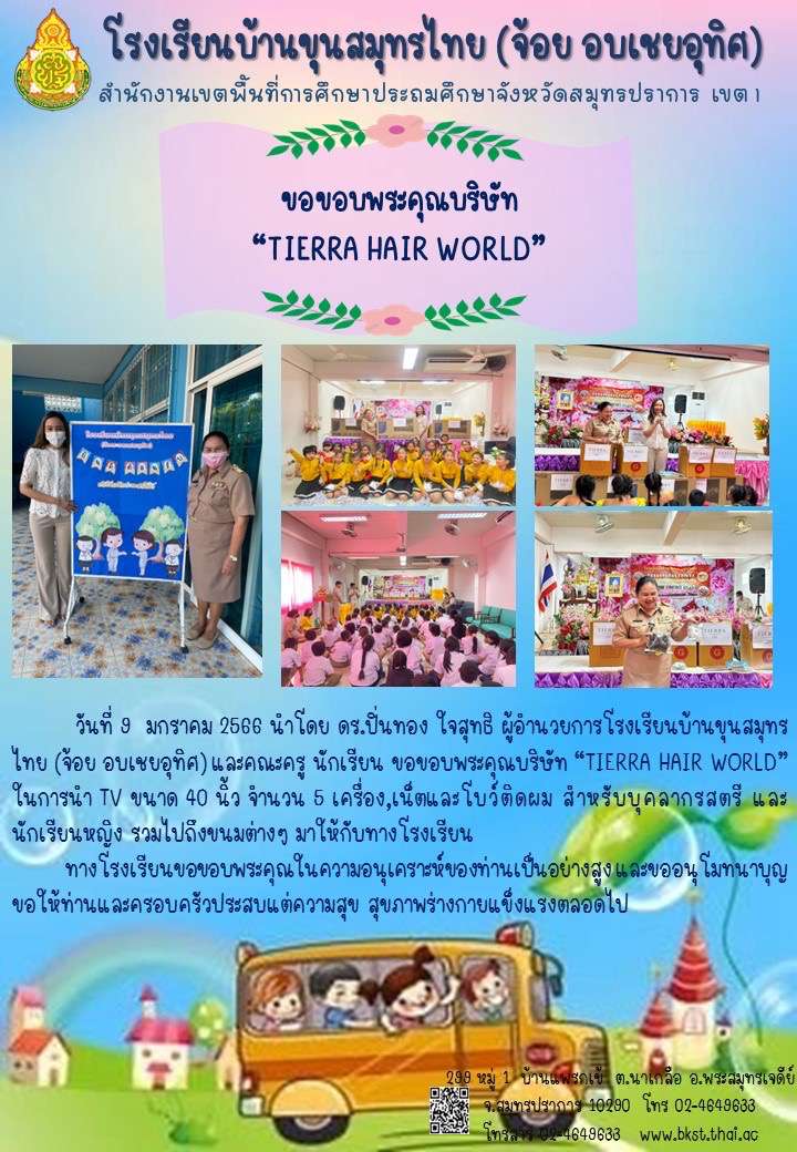 ขอบคุณในความอนุเคราะห์ คุณแม่สายใจบริจาคเครื่องกรองน้ำให้กับโรงเรียนบ้านขุนสมุทรไทย(จ้อยอบเชยอุทิศ)