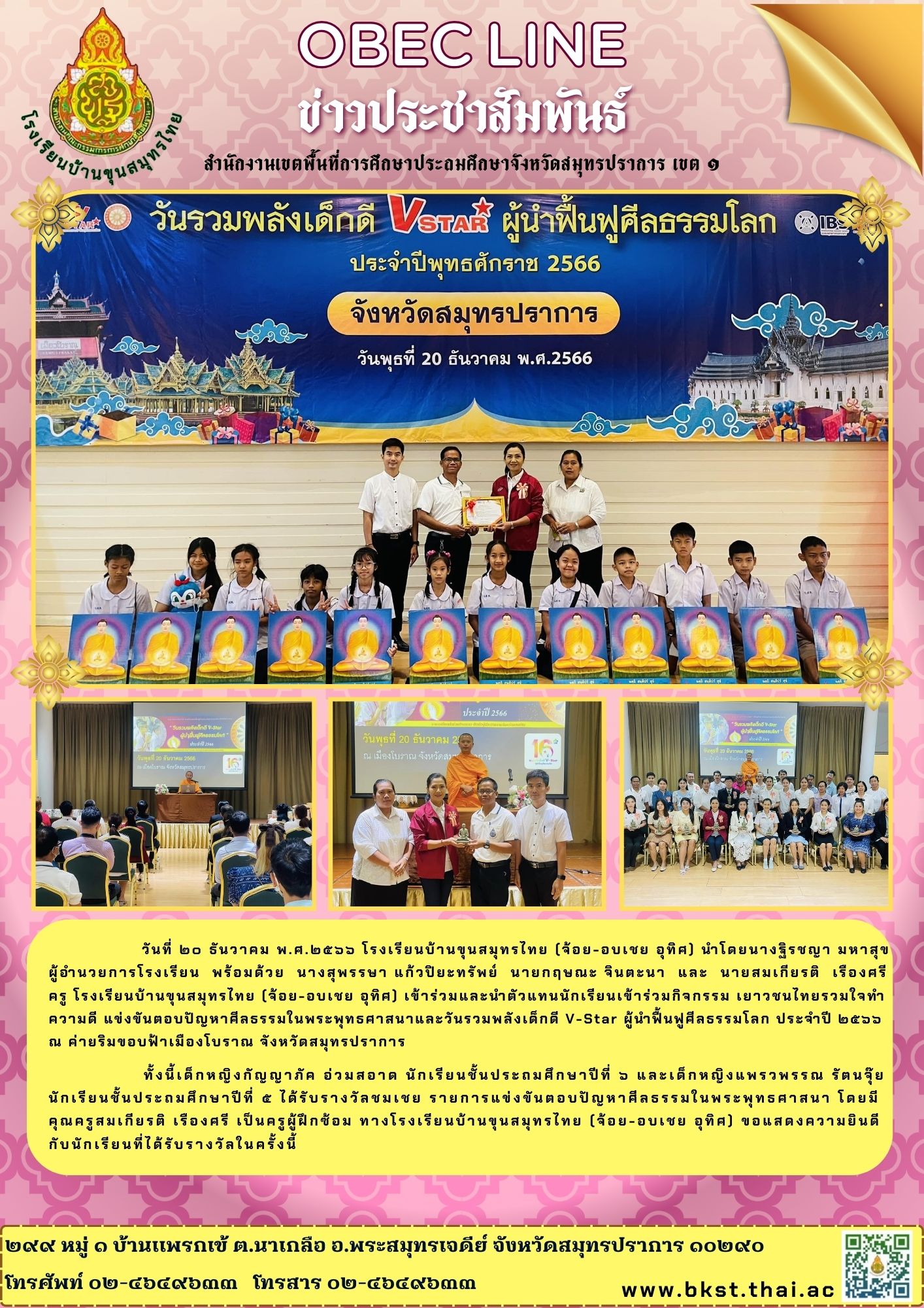 กิจกรรมเยาวชนไทยรวมใจทำความดี แข่งขันตอบปัญหาศีลธรรมในพระพุทธศาสนาและวันรวมพลังเด็กดี V-Star ผู้นำฟื้นฟูศีลธรรมโลก ประจำปี ๒๕๖๖