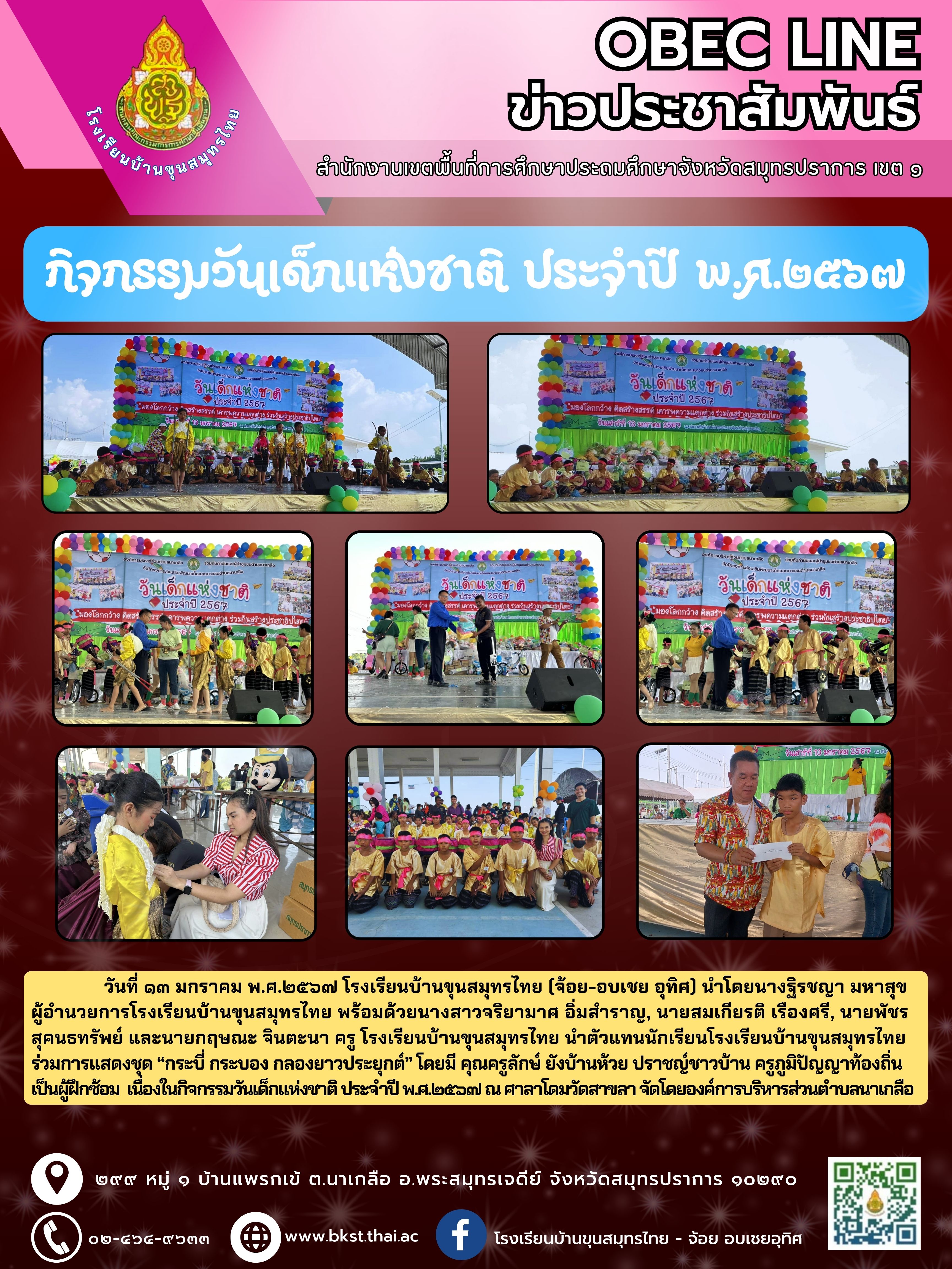 โรงเรียนบ้านขุนสมุทรไทย นำตัวแทนนักเรียนโรงเรียนบ้านขุนสมุทรไทย ร่วมการแสดงชุด ?กระบี่ กระบอง กลองยาวประยุกต์? โดยมี คุณครูลักษ์ ยังบ้านห้วย ปราชญ์ชาวบ้าน ครูภูมิปัญญาท้องถิ่น เป็นผู้ฝึกซ้อม