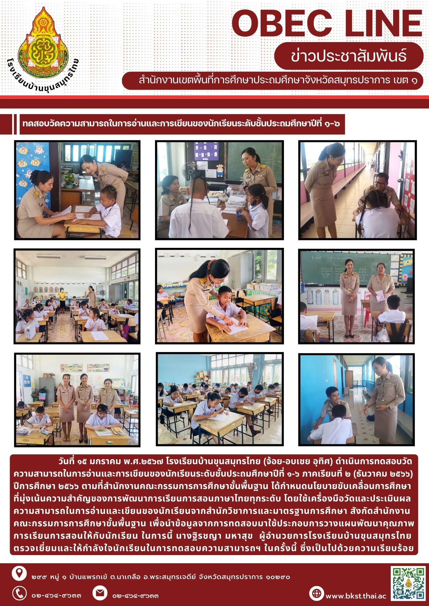ทดสอบการอ่าน เขียน เรียงความ นักเรียนระดับชั้น ประถมศึกษาปีที่ ๑-๖