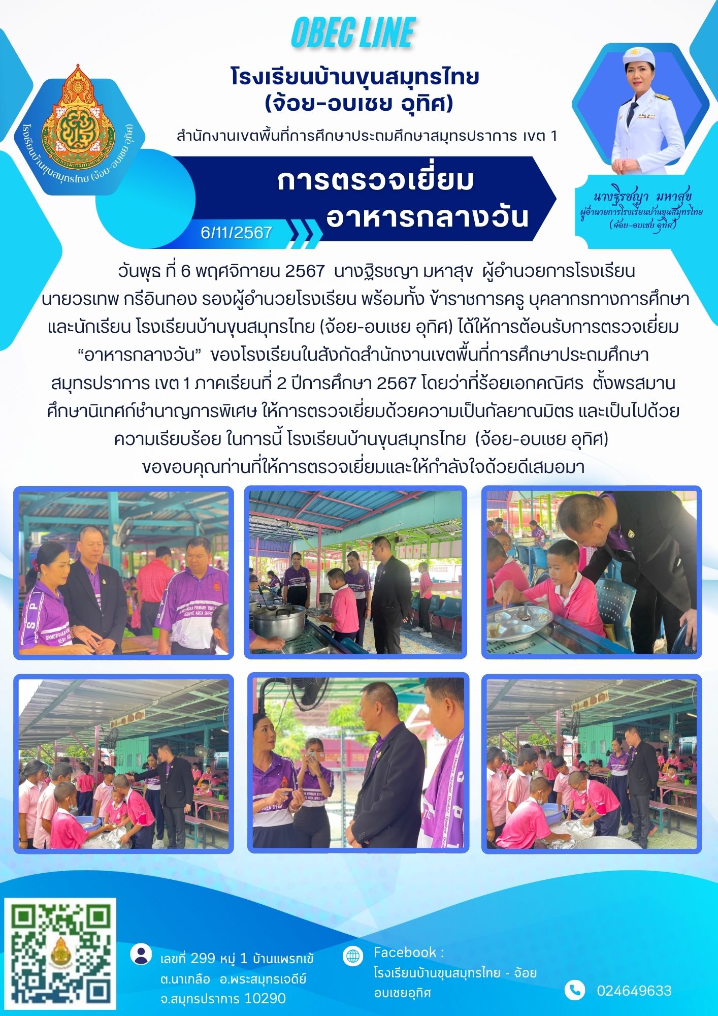การตรวจเยี่ยม อาหารกลางวัน โรงเรียนบ้านขุนสมุทรไทย