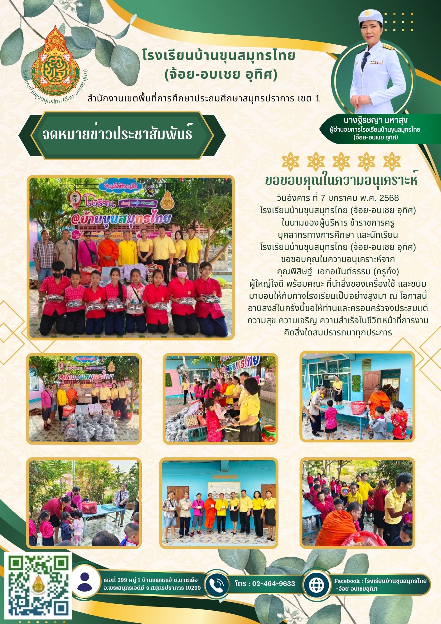 ขอขอบพระคุณ คุณพิสิษฐ์ (ครูก๋ง) เอกอนันต์ธรรม ผู้ใหญ่ใจดี พร้อมคณะ ที่นำสิ่งของเครื่องใช้และขนม มามอบให้กับทางโรงเรียนบ้านขุนสมุทรไทย