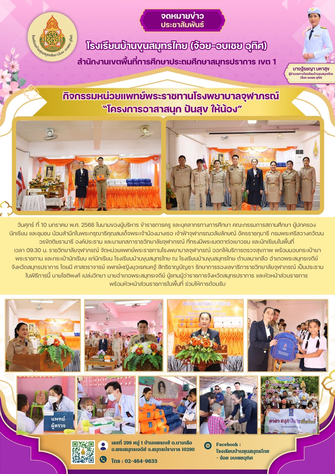 วันศุกร์ที่ ๑๐ มกราคม พ.ศ. ๒๕๖๘ สมเด็จพระเจ้าน้องนางเธอ เจ้าฟ้าจุฬาภรณวลัยลักษณ์ อัครราชกุมารี กรมพระศรีสวางควัฒน วรขัตติยราชนารี องค์ประธาน และนายกสภาราชวิทยาลัยจุฬาภรณ์ ที่ทรงมีพระเมตตาต่อเยาวชน และ