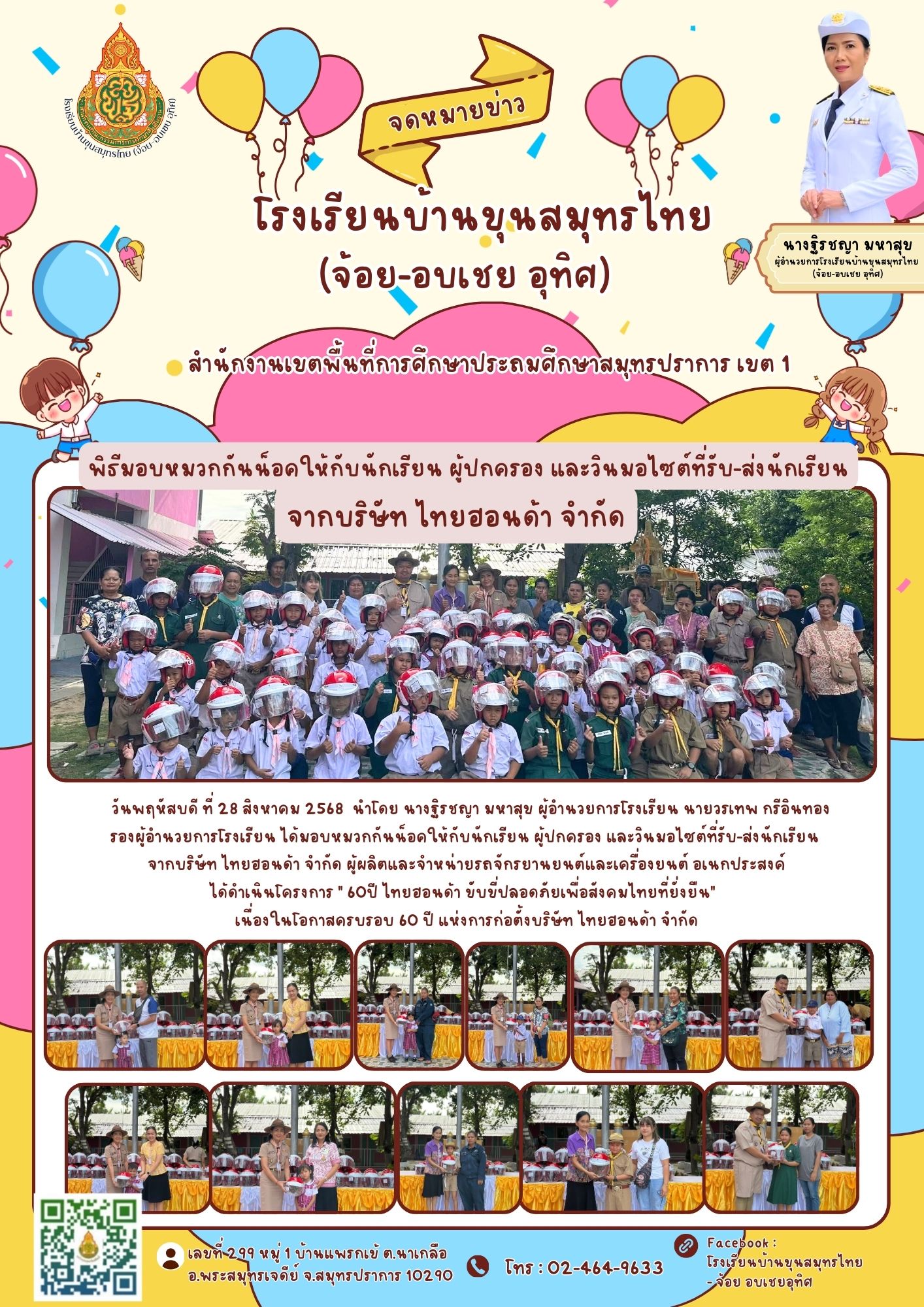 พิธีมอบหมวกกันน็อคให้กับนักเรียน และผู้ปกครองและวิมอเตอร์ไซค์ที่ รับ-ส่ง นักเรียน
