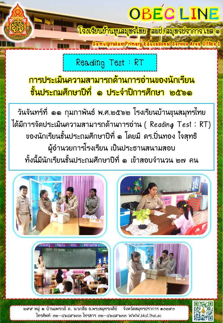 การประเมินความสามารถด้านการอ่านของนักเรียนชั้นประถมศึกษาปีที่ 1 (Reading Test: RT) ประจำปีการศึกษา 2561