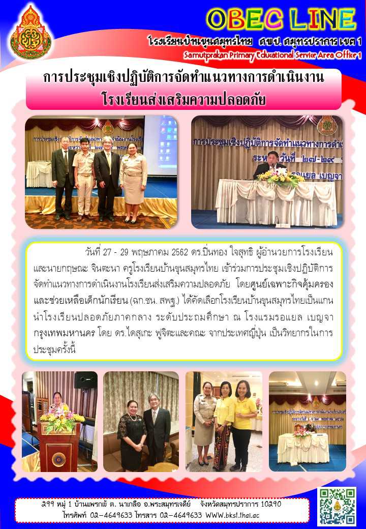 การประชุมเชิงปฏิบัติติการจัดทำแนวทางการดำเนินงานโรงเรียนส่งเสริมความปลอดภัย