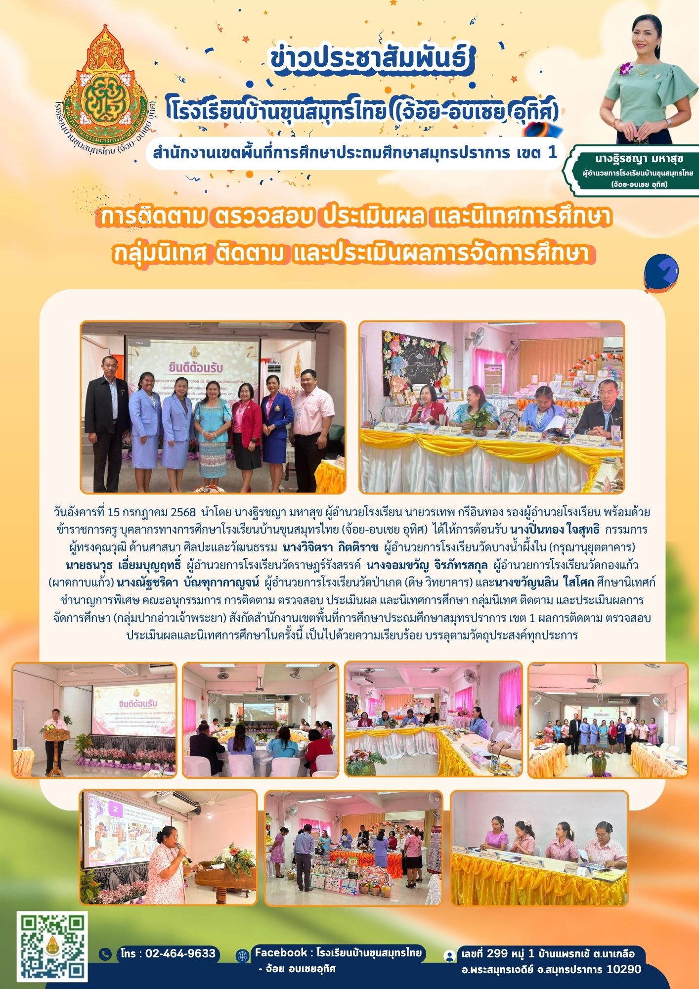 โรงเรียนบ้านขุนสมุทรไทย เข้ารับการติดตาม ตรวจสอบ ประเมินผล และนิเทศการศึกษา